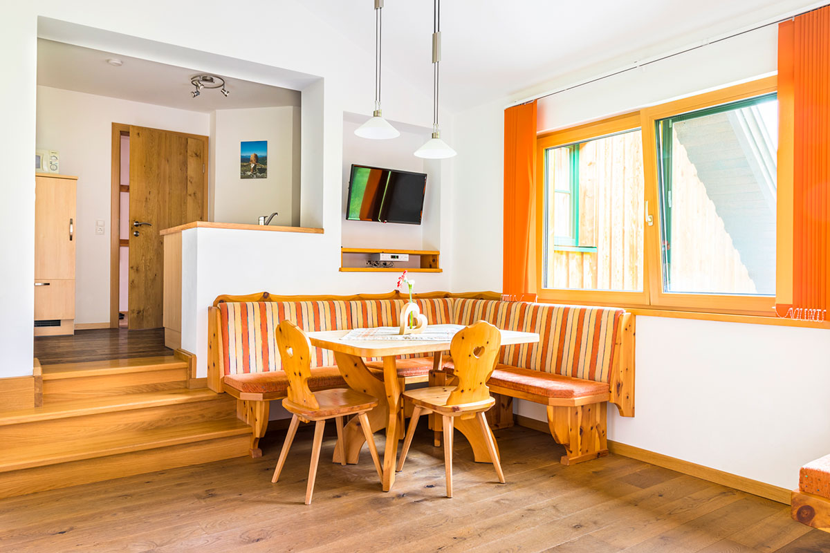 - Wohn-/Essbereich mit Sitzgruppe, Zirbencouch, Radio und SAT-TV